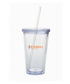 This high-quality 18 oz. sweatproof tumbler with double-wall insulation is perfect for your cold beverages. The screw-on lid comes with a removable drinking straw.