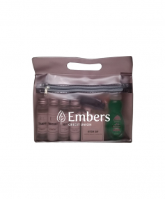 It's always the little things that are forgotten that are hard to find at your new place. We packed all the essentials into one handy tote. EST Shampoo, Conditioner, Body Wash, Lotion & Hand Soap, Old Spice and Dove Deodorants, Toothbrush, Colgate Toothpaste, Whispermint Mouthwash, Brush/Comb, Band Aids, Advil packet, Emergen-C Drink Packs, Alka Seltzer, Baby Wipes, Cotton Balls/Qtips, Tide Laundry Packet and Palmolive Dishwashing Soap. 9 1/2" W x 8" H x 2 3/4" D