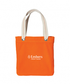 The Allie Tote is perfect for shopping, commuting or sightseeing. Contrast lining, striped handles and large metal grommets add a touch of whimsy to this casual tote. 11 Oz., cotton canvas. Interior zippered pocket. 13.25" W x 15.75" H x 3.5" D.